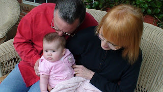 We arrived home two weeks ago from a week-long visit to see family in Oklahoma City. My mom and dad flew out from Orlando and Shannon flew in from Reno. Overall, it was an incredibly low-key trip, just what I had hoped for. Most days, we hung around the house. My aunt Peggy and Uncle Bill played the generous hosts, giving us a place to stay and several wonderful meals out (many, many thanks, you guys! we can't wait to come back). As a quick sidenote: my uncle will tell you that he really isn't a "baby person" but he did like Maggie!). Daily, Dad, Shan, and I went to Starbucks to get our caffeine fix for the day (his treat). We all enjoyed talking in the hot tub one night and spent many days on their gorgeous porch out back, talking and connecting. I am quite envious of that porch and am eager to have my own some day! Mag was able to meet a ton of family, including the extra-special time with her great-grandparents. They were so thrilled to *finally* meet her. On Saturday, Shan and I cooked up a tasty brunch for my dad's family, who drove in from Tulsa. This was one of my favorite trips and once again, Maggie was a fantastic traveller.